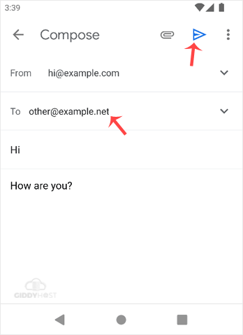 3. Enter the email address of the person you want to send the email to in the To field. Enter the email subject, and type your message. Then tap on Send.
