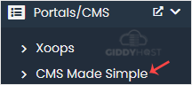 4. On the left side, locate the Portal/CMS category. Click on it and then on the CMS Made Simple link that appears.